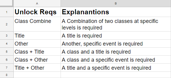 Class Unlock Requirements: